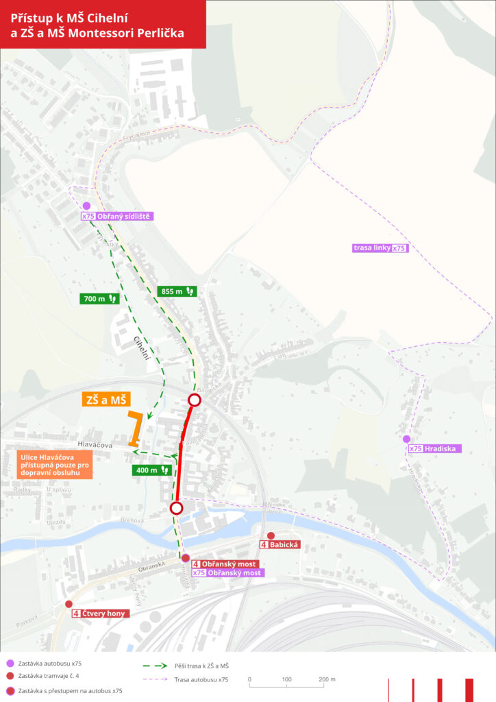 Obyvatelé ulice Kmochova a Faulhabrova majíprůjezd do města zajištěn přes Mlýnské nábřeží na Obřanský most a ulici Obřanskou. Břehová přes Obřanský most.